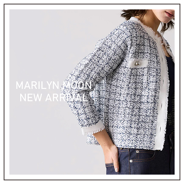 オケージョンシーンから普段使いまで、オンオフともにエフォートレスに着用できるツイードをニット素材で表現したフリンジがアクセントのニットジャケットが入荷しました。